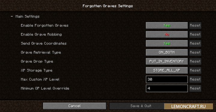 Мод на забытые могилы Forgotten Graves небольшая модификация, которая будет генерировать по всему миру Майнкрафт могилы., после того, как игрок погиб. В данных могилах будут хранится предметы игрока, а так же его опыт. Могила, не исчезнет, пока игрок не заберет свое. В моде присутствую настройки мода, где вы сможете установить обворовывание могил, а так же отсылку координат места, где погиб игрок.